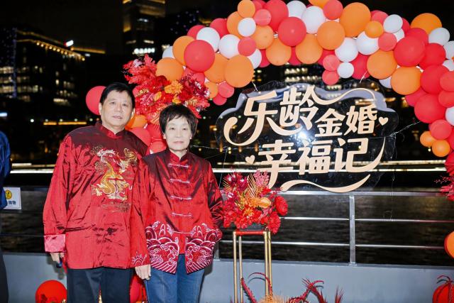 在黃浦江畔,一場充滿浪漫與溫情的活動舉行,金婚夫婦為新婚夫婦送上了美好的祝福。
