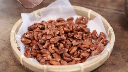 古法制作麻煩,從挑選、去殼到制作要經(jīng)歷12道復(fù)雜工序,100斤核桃只能產(chǎn)出5斤果仁。用山泉水浸泡和芝麻粉去澀,2次山泉浸煮要8小時(shí),小鍋炒制開(kāi)縫入味,炭火烘烤鎖住原香。