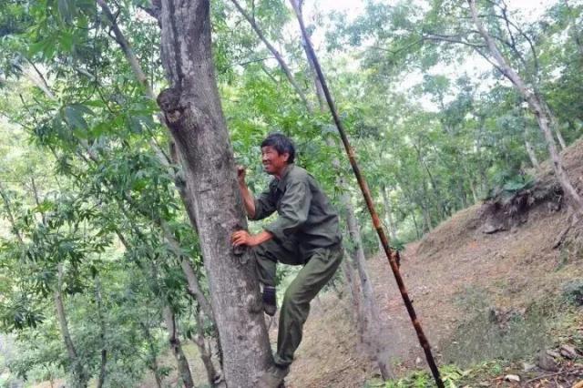 打山核桃,登山都極為困難,山核桃長(zhǎng)在大山陡坡上。馮師傅爬上10 - 20米的高樹(shù),借著竹竿巧勁打核桃,一敲一個(gè)準(zhǔn)。盡管他身手敏捷,但稍有不慎就會(huì)掉落山崖。
