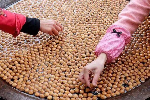 好吃的秘訣在于祖輩傳承三十年的古法秘制。采摘艱難,做出好吃不澀的山核桃仁更不易,這依賴臨安祖祖輩輩傳承的古法工藝。幾百年來(lái),像馮師傅這樣的當(dāng)?shù)厣胶颂依辖橙?,一直用土灶古法秘制核桃仁。核桃仁?jīng)祖輩傳承的煮料秘方熬煮、烘烤后,香甜酥脆,全國(guó)一絕。