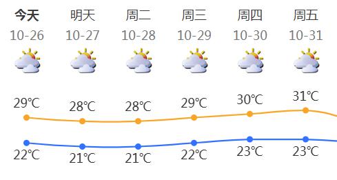 深圳氣象臺預報,今日我市多云間晴,空氣干燥;氣溫22℃ - 29℃;東北風3 - 4級,沿海、高地和海區(qū)陣風6級;相對濕度45% - 65%。