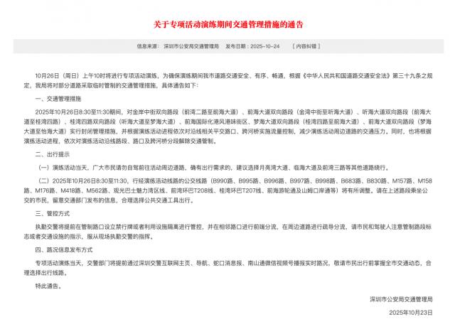 根據(jù)深圳市公安局交通管理局最新公告,為進行專項活動演練,2025年10月26日8:30至11:30期間,對金岸中街雙向路段(前灣二路至前海大道)、前海大道雙向路段(金灣中街至聽海大道)、聽海大道雙向路段(前海大道至桂灣四路)、桂灣四路雙向路段(聽海大道至夢海大道)、前海國際化港風港味街區(qū)、夢海大道雙向路段(桂灣四路至前海大道)、前海大道雙向路段(夢海大道至怡海大道)實行封閉管理措施,請各位車主注意繞行。