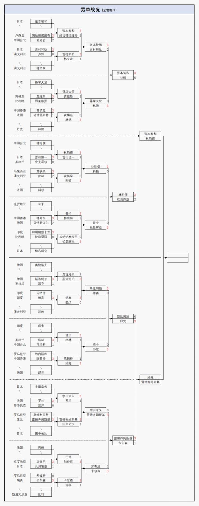 21:00 男單半決賽,邱黨(德國)VS雷德齊姆斯基(波蘭);