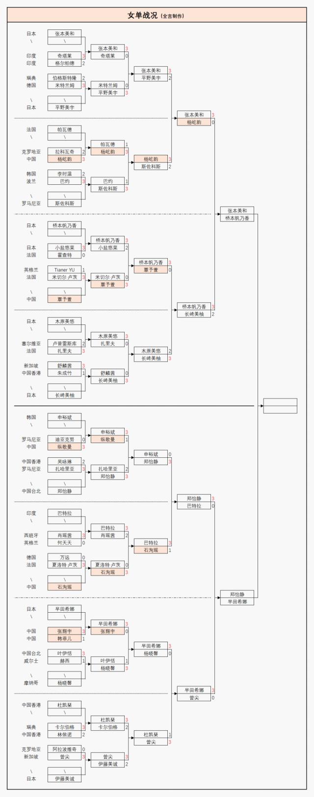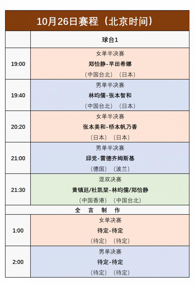 19:00 女單半決賽,鄭怡靜(中國臺(tái)北)VS早田希娜(日本);