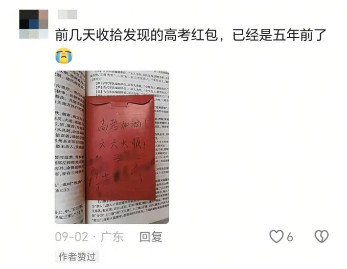 高考前爸媽給的紅包,寫著‘六六大順’,雖然里面的錢早就花完了,但這份寄托著好運的心意,一直留在抽屜最深處。