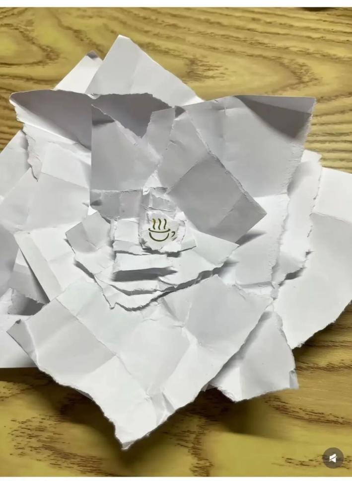 滿懷期待地打開層層疊疊包裹的紙片,里面卻是一杯‘熱氣騰騰’的迷你咖啡。
