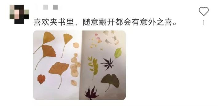 許多網(wǎng)友分享,自己曾在某個秋日,收藏起一片銀杏、一朵小花,當(dāng)時或許只是隨手一夾,便漸漸遺忘。