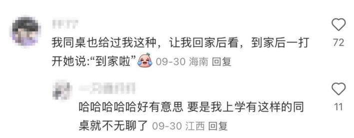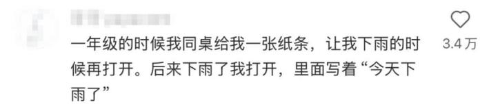 評論區(qū)網(wǎng)友紛紛分享起自己的同款經(jīng)歷,‘今天下雨了’‘到家啦’,這些‘處心積慮’的小紙條,是獨屬于那時的我們純真的快樂。