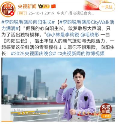 在這次晚會上,他和毛曉彤一唱一和,以“City Walk”的方式走過城市地標,臺下觀眾叫好聲不斷,彈幕里全是“陽光”“干凈”“青春感”的評價。