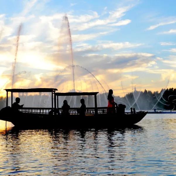 秋日的月亮湖顯得格外遼闊,乘坐游船巡游湖面,天高氣爽,天水一線間沙鷗展翅翱翔。船尾的浪花驚起水底的魚蝦,還能隱約看見漁民撒網(wǎng)的身影。岸邊的楊樹林換上了“秋裝”,淺黃、深橙的葉子隨風(fēng)飄落,飄進澄澈的湖水里,宛如撒下一把碎金。