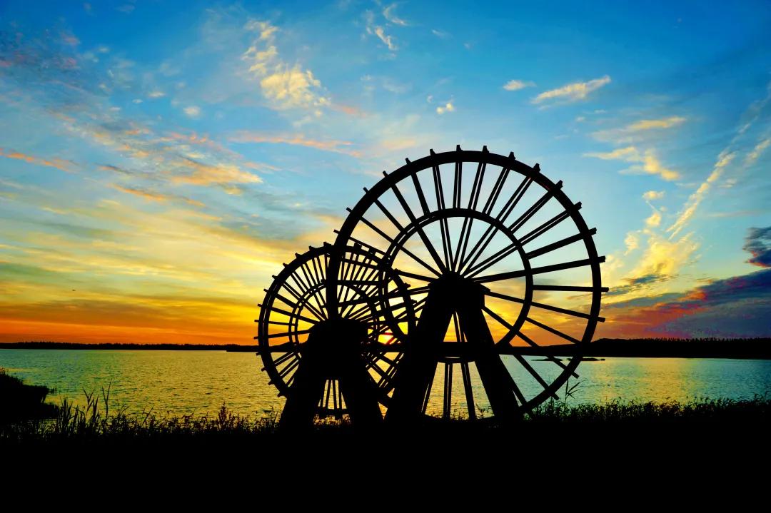 作為國家 AAAAA 級景區(qū),嫩江灣在秋日迎來了它的“顏值巔峰”。3.5 平方公里的濕地中,蘆葦蕩由淺黃逐漸染成鎏金,微風(fēng)拂過,便掀起層層“金色波浪”。登上遼皇觀魚臺極目遠眺,嫩江如一條蜿蜒的銀帶,與岸邊橙紅的楊樹林相互映襯。樹葉的倒影在玉龍湖的碧波中搖曳,恰似一幅流動的油畫。傍晚時分,千萬不要急著離開,落日將天空染成橘色,偶爾有東方白鸛從霞光中掠過,完美呈現(xiàn)出“落霞與孤鶩齊飛”的絕美意境。