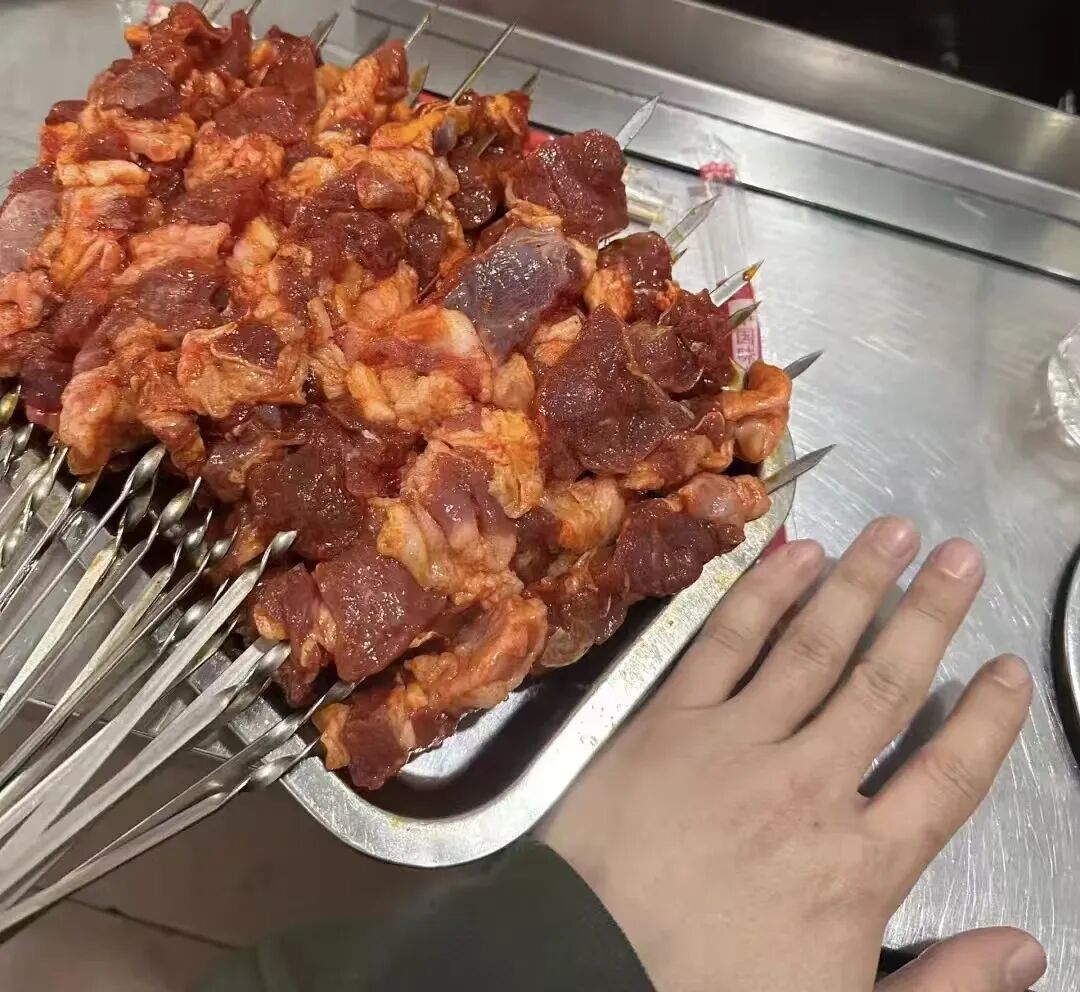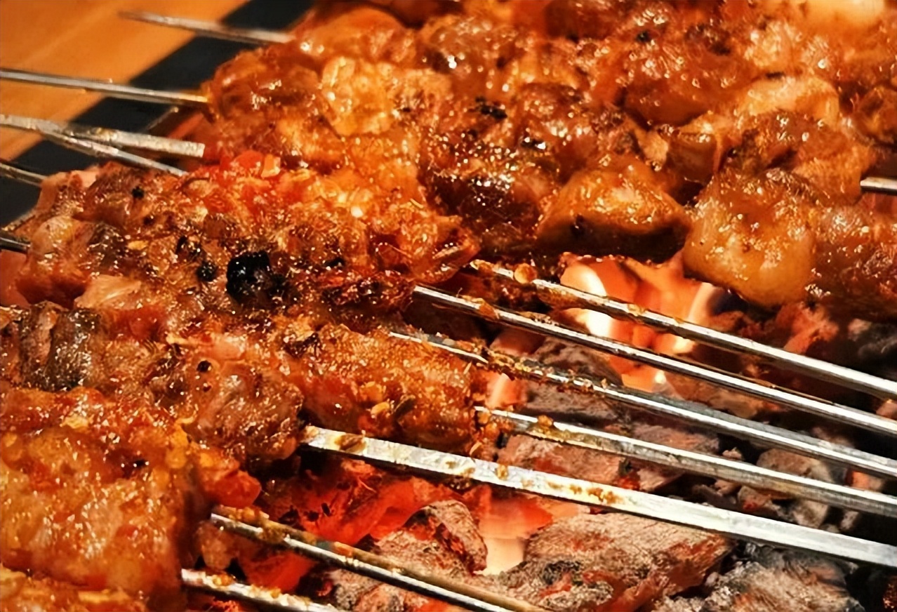 琿春的肉串與其他地方不同,個頭超大,一根釬子上有4至5塊大片肉,要耐心把里面的肉烤熟,達(dá)到外焦里嫩,吃上一口,肉香四溢。