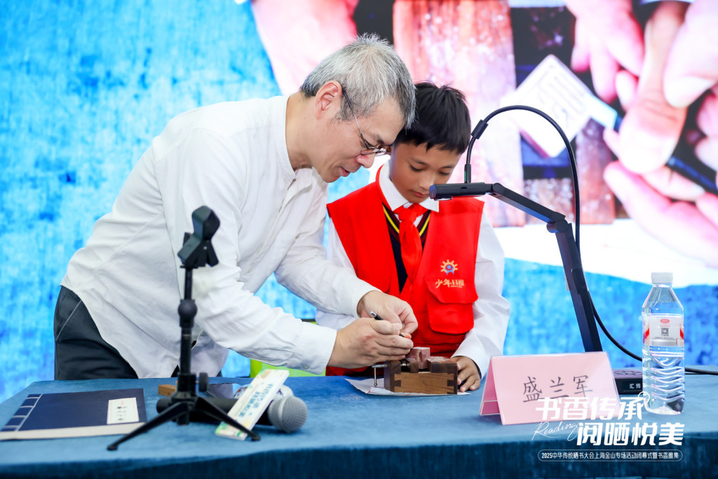 讓古籍“活”起來。舞臺上,篆刻家手持一方印石、一把刻刀,在方寸之間“曬”出千年古意,分朱布白中盡顯漢字之美;古籍修復(fù)師則全神貫注,用巧手將破碎的時光重新拼接,讓陳舊的典籍重獲新生;在典藏利用與藏書文化陳列室,讀者不僅能近距離觀賞館藏珍本,還能親手體驗線裝書裝幀、參與刻有金山經(jīng)典竹枝詞的石刻拓印,感受裝幀技藝與華夏印刷術(shù)的源流演變;地方文化講習(xí)課堂上,曬書主題講座“淳風(fēng)還古——竹枝詞中的金山清代時令節(jié)俗”正緩緩講述,民俗學(xué)者以竹枝詞作品為載體,將塵封的歲時風(fēng)俗、市井煙火與鄉(xiāng)土情懷轉(zhuǎn)化為可感可知的生活畫面。