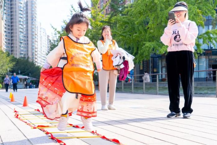 活動(dòng)圍繞“健康”這一主線,精心設(shè)置了四大主題打卡點(diǎn),把健康知識(shí)變成了有趣的挑戰(zhàn)。在黃金城道的“營(yíng)養(yǎng)投投樂(lè)”區(qū)域,孩子們?cè)谟螒蛑姓J(rèn)識(shí)了“膳食寶塔”,記住了“每天要吃五色蔬菜”的口訣;在融·古北驛站的“‘手’護(hù)健康”環(huán)節(jié),親子組隊(duì)完成“七步洗手法”挑戰(zhàn),在默契配合中強(qiáng)化了衛(wèi)生習(xí)慣;古北市民中心站的“情緒小怪獸”“信任盲行”引導(dǎo)家庭關(guān)注情緒表達(dá)和彼此信任。一路集章打卡,家長(zhǎng)和孩子既鍛煉了身體,又在合作中收獲了健康知識(shí),產(chǎn)生了情感共鳴。