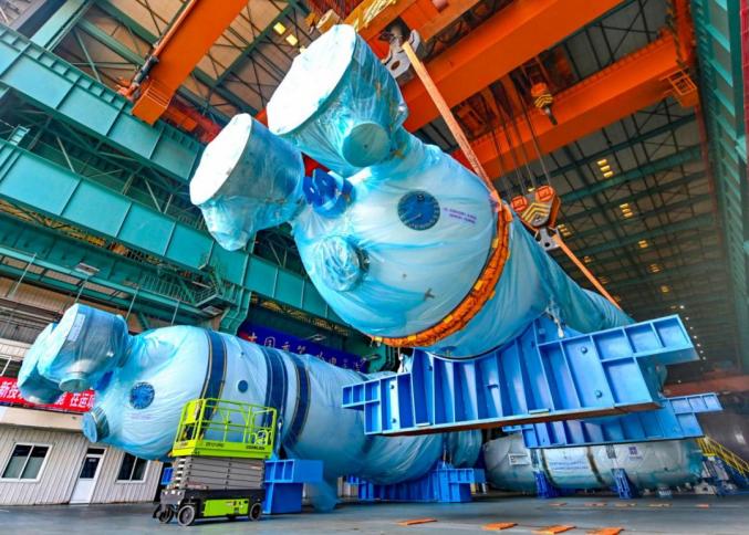 哈電集團(tuán)(秦皇島)重型裝備有限公司生產(chǎn)的三代核電CAP1000蒸汽發(fā)生器,標(biāo)志著我國已完全具備三代核電CAP系列蒸汽發(fā)生器批量化制造能力。記者 李鐸 攝