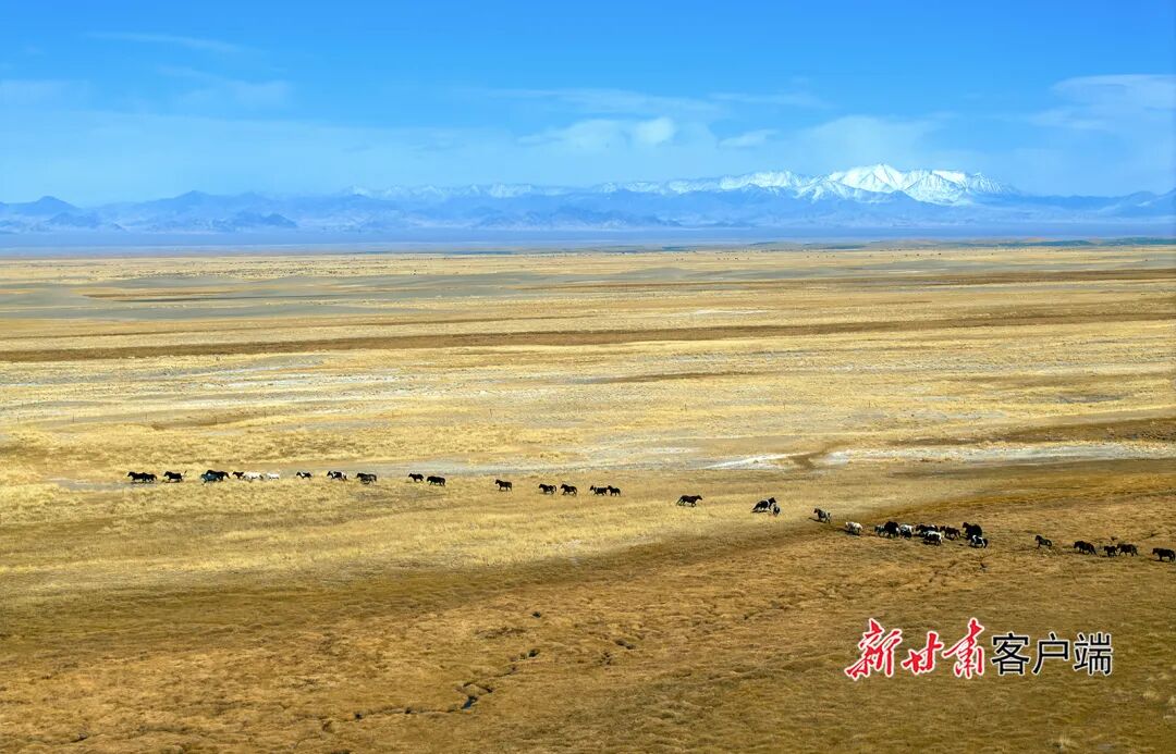 霜降時(shí)節(jié),位于祁連山下的阿克塞縣阿勒騰鄉(xiāng)哈爾騰高原秋色迷人。只見駿馬在金色草原上盡情馳騁,駱駝在沙漠與雪山之間悠然漫步,展現(xiàn)出一幅別樣的生態(tài)美景圖。(新甘肅·甘肅日?qǐng)?bào)通訊員 高宏善)