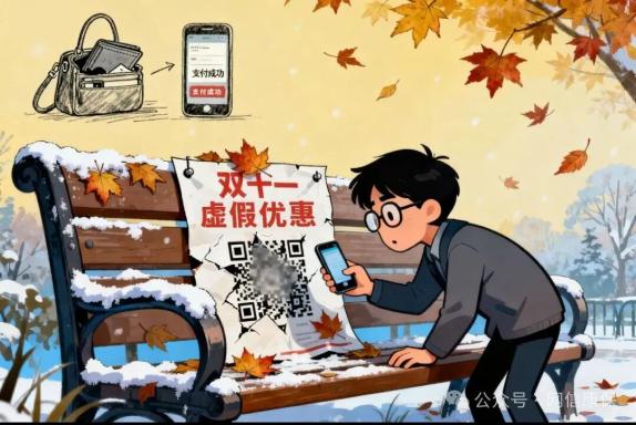 “雙十一”促銷期間,不法分子偽造優(yōu)惠信息和二維碼,掃描或點擊后,個人信息和資金易被盜取。