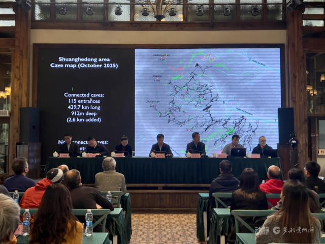 10月24日,貴州綏陽雙河洞第24次國際洞穴科學考察正式結束。科考成果發(fā)布顯示:截至目前,雙河洞系統(tǒng)繼續(xù)穩(wěn)居世界第三、亞洲第一長洞,縱深仍保持中國第三。共確認洞口115個,總長度較去年增加了2.6公里,達到439.7公里;未連通部分新增洞口57個累計達411個,總長度增加32公里累計達184公里。