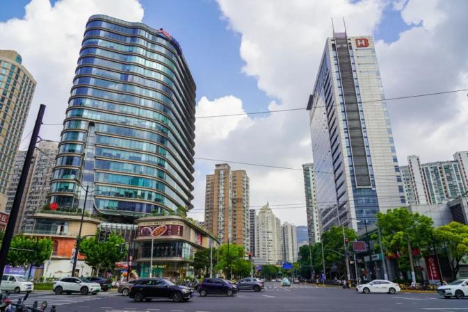 地下,軌交13號線、7號線在長壽路站交匯,形成換乘樞紐,15分鐘的出行范圍可覆蓋浦西市中心的多個CBD。同時,周邊分布的辦公樓、住宅樓、商業(yè)綜合體、文娛場所,將商圈烘托成一處內(nèi)環(huán)成熟核心區(qū),屬于典型的TOD商務區(qū)(即“以公共交通為導向的發(fā)展模式”)。