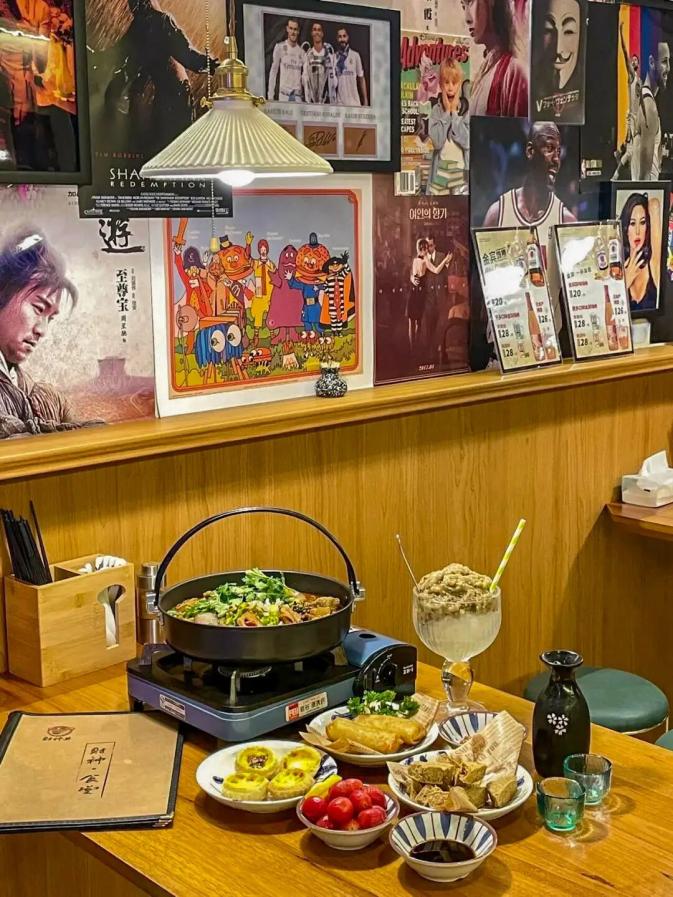 除了商業(yè)綜合體,常德路沿街還分布著各種餐飲小店。財神食堂的老板是在長壽路長大的上海“80后”,從日本留學歸來后,將本土美食記憶與日式居酒屋風格融合,打造了這家都市白領喜愛的“深夜食堂”。這里的菜品既有炸豬排、砂鍋小餛飩、咸肉菜飯等上海家常味道,也有潮汕砂鍋、日式燒鳥等特色美食,不少食客將其與《繁花》里的“夜東京”相媲美。
