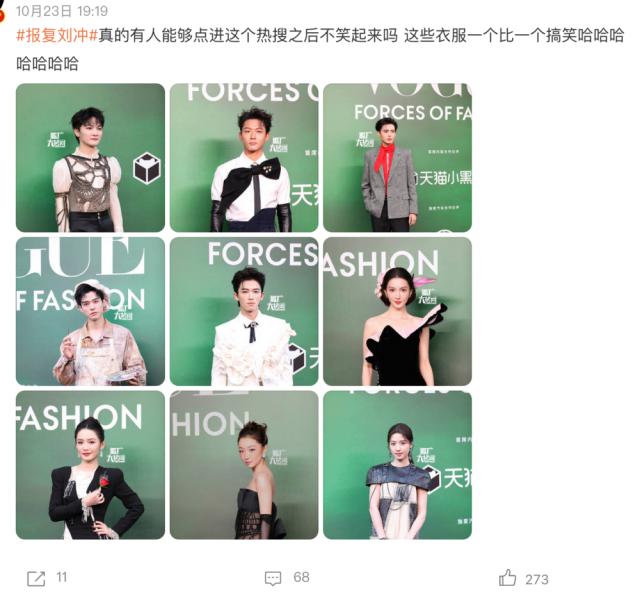 出席活動(dòng)走紅毯的明星也被吐槽,一些明星穿著讓人難以理解,被吃瓜群眾吐槽是“報(bào)復(fù)劉沖”,該話題還登上熱搜。不得不說,網(wǎng)友吐槽很在理。