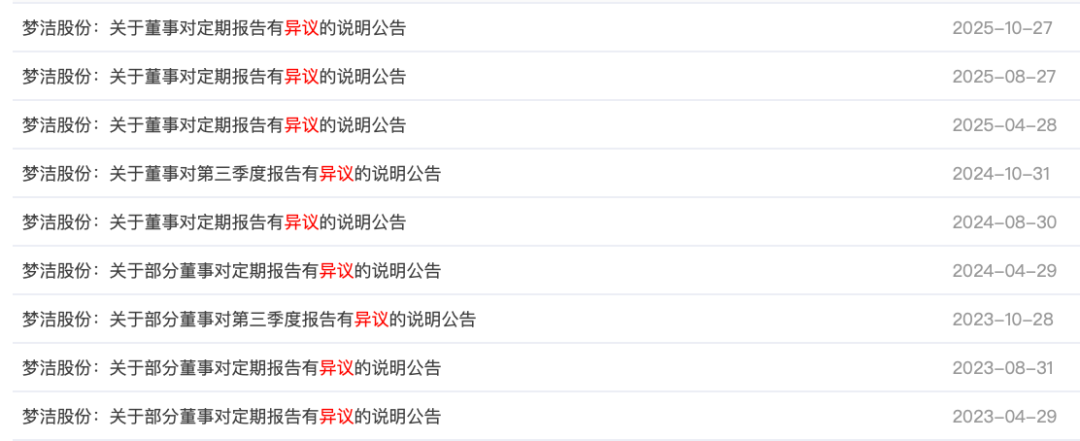 據(jù)悉,陳潔自2023年2月3日起擔任夢潔股份董事。據(jù)證券時報報道,從2023年至今,陳潔已連續(xù)9次對公司財報表達異議,多次提及夢潔股份在大方睡眠及葉藝峰上的財務問題。