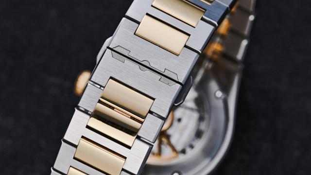 除表殼外,看似無變化的一體式表鏈也重新設(shè)計。每節(jié)鏈節(jié)更窄,中間鏈節(jié)過渡更自然,表扣鐫刻有芝柏標(biāo)志性的金橋圖案。表鏈采用創(chuàng)新微調(diào)系統(tǒng),調(diào)節(jié)范圍達(dá)4毫米,大幅提升佩戴舒適性。這款表最大亮點是全新的GP4800超薄自動機(jī)芯。很多朋友見到它的第一反應(yīng)是芝柏終于出新機(jī)芯了,并非之前的3000機(jī)芯不好,只是它“年歲已高”。