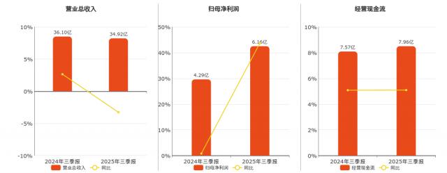 公司營業(yè)總收入為34.92億元,相較于去年同報告期減少了1.18億元,同比下降3.27%。歸母凈利潤為6.16億元,經(jīng)營活動現(xiàn)金凈流入為7.96億元。