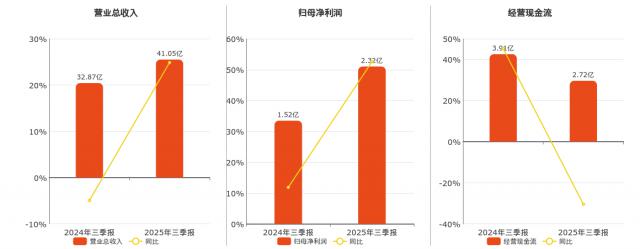 公司營業(yè)總收入為41.05億元,歸母凈利潤為2.32億元。經(jīng)營活動(dòng)現(xiàn)金凈流入為2.72億元,較去年同報(bào)告期減少1.19億元,同比下降30.43%。