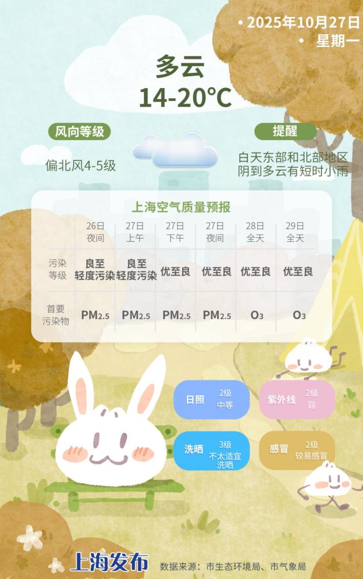 全天氣溫在14 - 20℃之間,偏北風(fēng)4 - 5級。