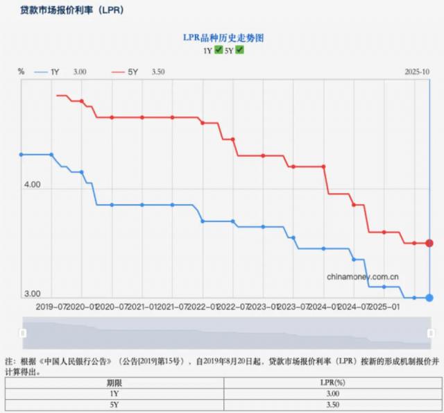 從圖中數(shù)據(jù)能看出,國內(nèi)利率處于下行通道。2019 年 5 年期 LPR 改革后首次報價是 4.85%,之后多次下調(diào),到 2025 年 10 月已降至 3.5%。趨勢一旦形成,短期內(nèi)很難改變。