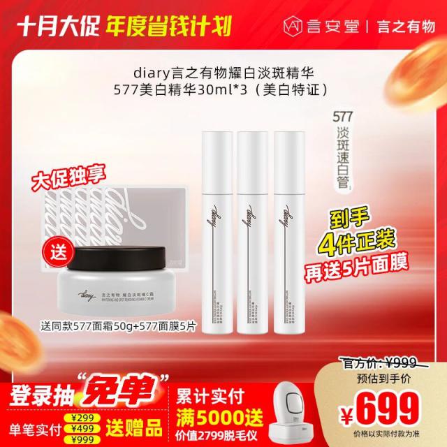 除了扛把子成分 577 足量添加,里面還有經(jīng)典的美白成分α - 熊果苷來幫忙,如果真的有快速變白的訴求,這款精華可以說非常適合了!最重要的是這款產(chǎn)品持證美白特證上崗,實力夠硬!想要美白的姐妹直接入它,讓你提亮一個度!兩款組合一起拿下加贈同款面霜 18g 和 577 面膜 5 片,直接一套護膚流程安排到位!
