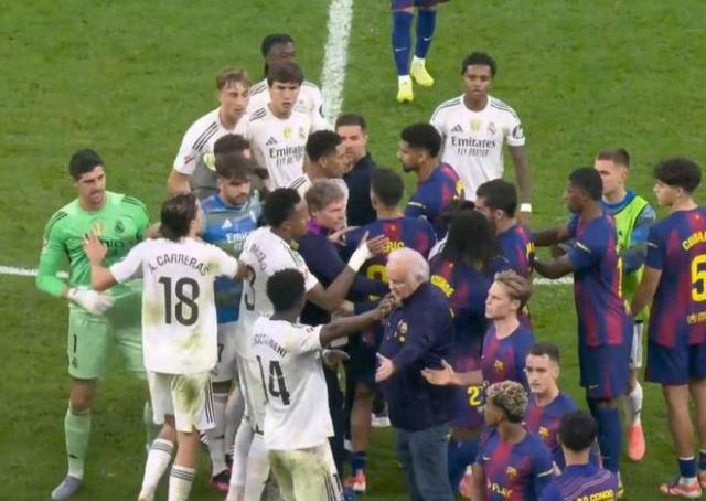 北京時(shí)間10月27日,西班牙國家德比激情上演,皇馬以2 - 1擊敗巴薩,贏得了這場價(jià)值25億歐的巔峰對決。然而賽后,雙方球員爆發(fā)了激烈沖突,忙壞了裁判,一共出示了1張紅牌、6張黃牌!