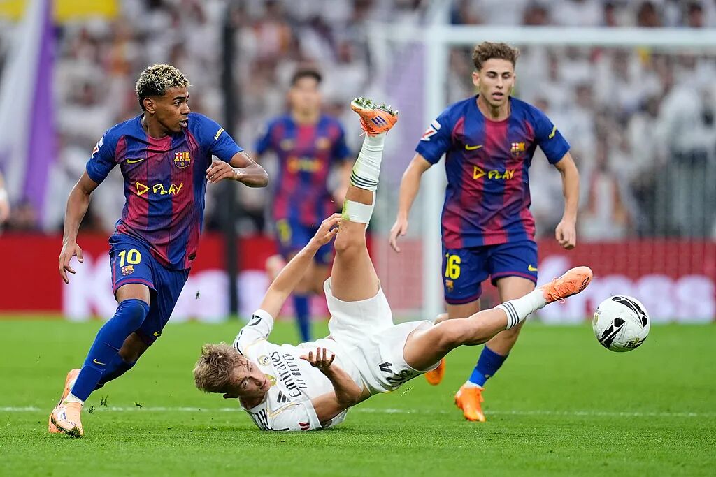 終場(chǎng)哨響,走向場(chǎng)邊的亞馬爾和維尼修斯打嘴仗,甚至要在停車(chē)場(chǎng)約架,雙方險(xiǎn)些沖突。好在主裁克制,沒(méi)出現(xiàn)補(bǔ)發(fā)紅牌情況。