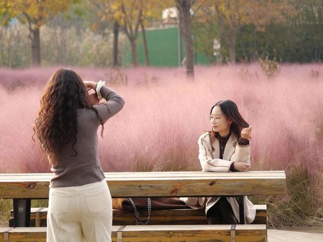 這里不僅有絢爛秋色,還有歲月的低語(yǔ)。粉黛亂子草如煙似霧,與銀杏的黃、楓葉的紅相互點(diǎn)綴。漫步公園,仿佛能聽見時(shí)光的回響,感受古今對(duì)話。暖陽(yáng)斜照,歲月寧?kù)o,這里是感受自然與人文融合的好地方。