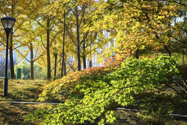 踏入馬坡城市森林公園,如同走進(jìn)斑斕的童話世界。元寶楓、銀杏、白蠟等樹木在秋風(fēng)中換了裝,橙紅、金黃與深綠交織,好似一幅天然的油畫。陽(yáng)光透過枝葉,灑下斑駁光影。漫步公園,就像踩著秋天的韻律。這里是城市的呼吸空間,也是忙碌生活里難得的靜謐之地。
