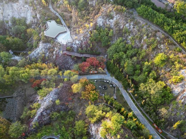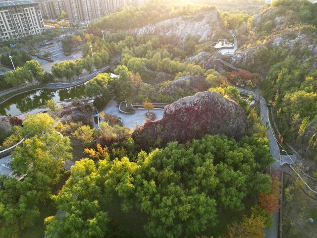 金牛山公園的秋天,多了一份登高望遠(yuǎn)的開闊感。順著石階向上,兩旁樹木已染上秋意。登上山頂遠(yuǎn)望,斑斕秋色盡收眼底。黃櫨、火炬樹等紅葉樹種像火焰般熾熱,與松柏的蒼翠相互映襯,構(gòu)成層次豐富的風(fēng)景畫。日落時(shí),霞光染上山巒,景色瑰麗如詩(shī)。
