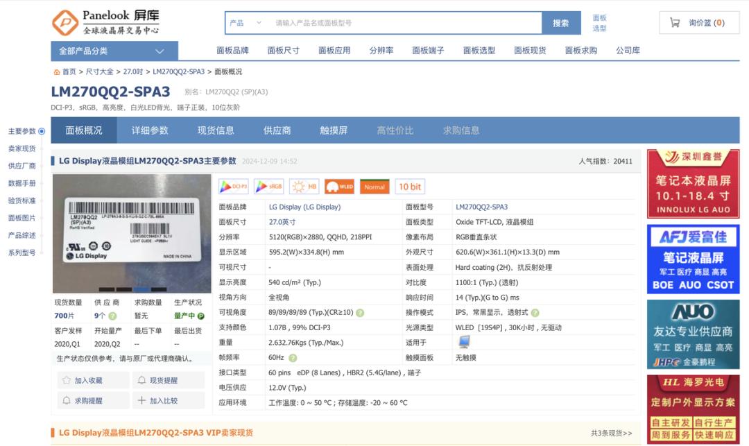 如果你不清楚具體的面板型號,可以挑選當(dāng)下比較熱門的顯示器,然后到屏庫網(wǎng)(一個能找到各種顯示器面板的數(shù)據(jù)庫)查詢其面板型號。