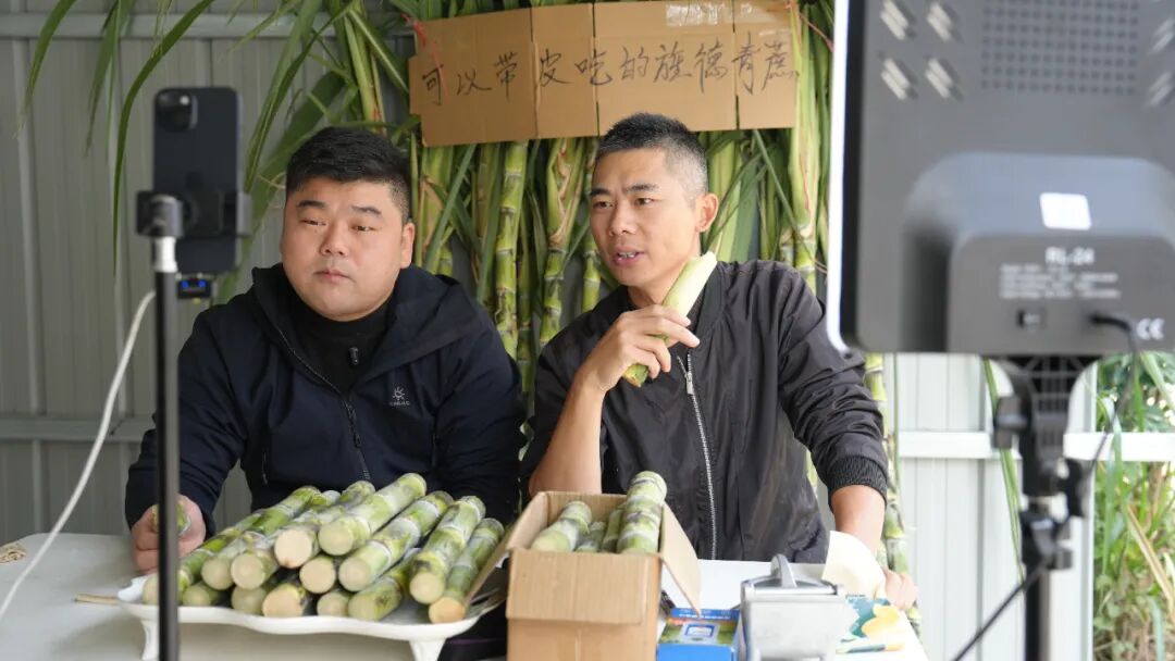 在旌德縣俞村鎮(zhèn)楊墅村,汪健和堂哥汪文強迎來了甘蔗售賣的忙碌時節(jié)。一條網(wǎng)線,一部手機,一個補光燈,一個簡易的直播間就搭建好了?!拔覀冹旱虑嗾嵬馄け?、汁水多,又脆又甜,能直接帶皮吃……”汪文強邊啃著甘蔗邊使勁推薦?!百I過,特別甜?!薄爸鞑?,快遞到哪兒了呀?”在直播彈幕互動中,各種評論不斷閃過。