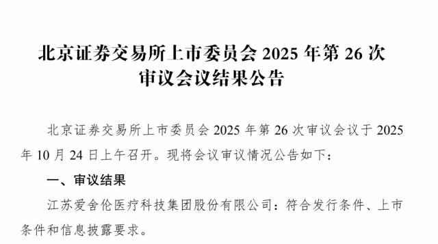 瑞財經 劉治穎 10月24日,北交所披露,江蘇愛舍倫醫(yī)療科技集團股份有限公司(以下簡稱:愛舍倫)符合發(fā)行條件、上市條件和信息披露要求。