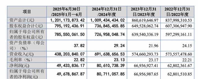 2022年至2024年及2025年上半年,愛舍倫營業(yè)收入分別為5.74億元、5.75億元、6.92億元及4.38億元,凈利潤分別為6280.24萬元、6693.69萬元、8061.07萬元及4943.38萬元。