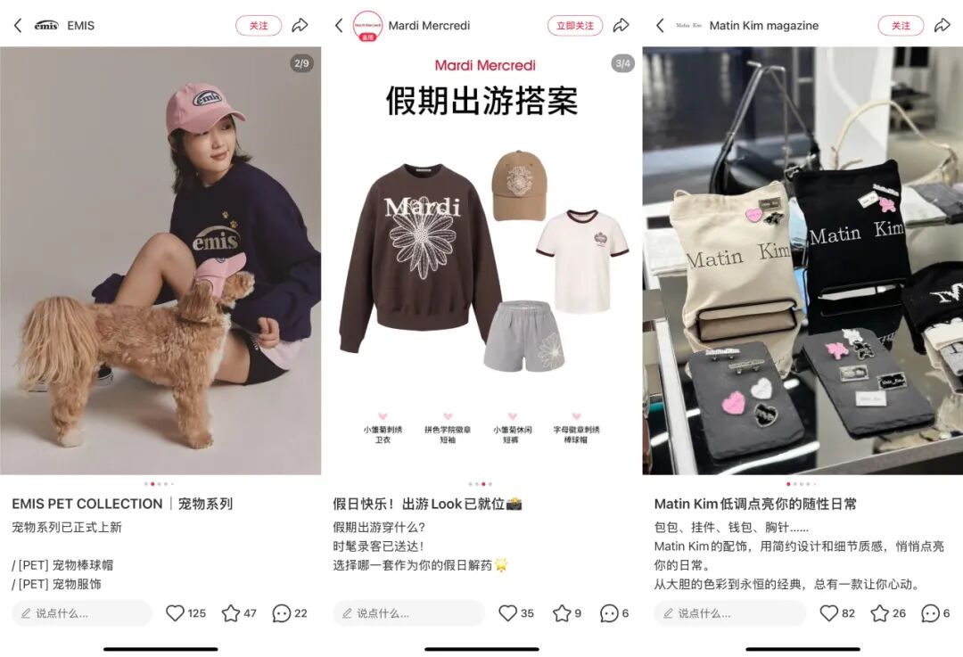 具體而言,Mardi Mercredi在小紅書相關(guān)話題已有1.8億瀏覽量和52萬(wàn)討論量。從小雛菊選色、穿搭到李佳琦等主播帶貨,多篇筆記互動(dòng)量近萬(wàn)。Matin Kim則憑借明星同款效應(yīng),成為不少潮人的穿搭標(biāo)配。迪麗熱巴同款外套、姜妍同款托特包、虞書欣同款沖鋒衣等單品頻頻出圈,成為爆款。與此同時(shí),emis也在全渠道加快開店步伐。2025年7月19日其開設(shè)天貓官方旗艦店,目前已進(jìn)駐京東、抖音、得物等主流電商平臺(tái)。