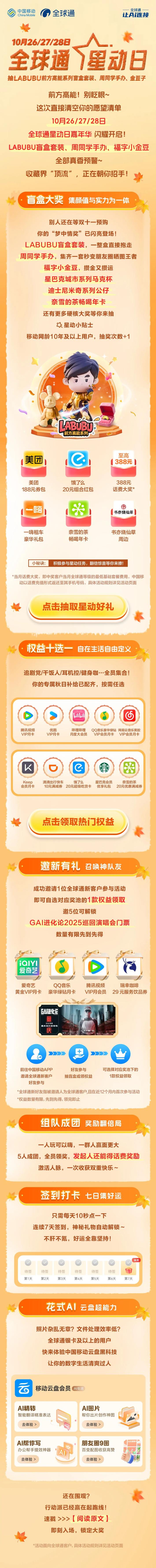 10月26、27、28日,全球通星動日嘉年華璀璨登場!
