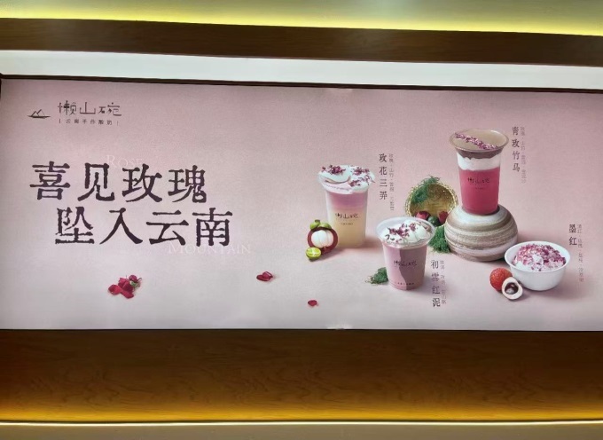 以上海的懶山碗為例,它以云南花、果、茶、乳為食材,打造玫瑰系列、糯糯雪流沙系列等云南手作酸奶,還根據(jù)不同城市調(diào)整菜單,如在杭州推“龍井酪雪”、南京推“秦淮云絳”。