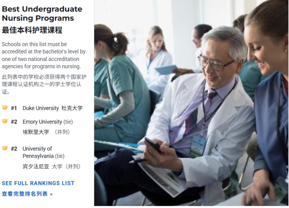 在2026年U.S. News護(hù)理本科排名中,杜克大學(xué)穩(wěn)居第一,賓大和埃默里并列第二。