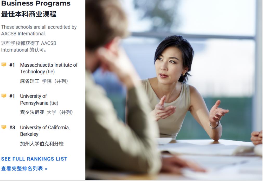 在本科商科榜單中,MIT與賓大并列第一,伯克利位居第三。