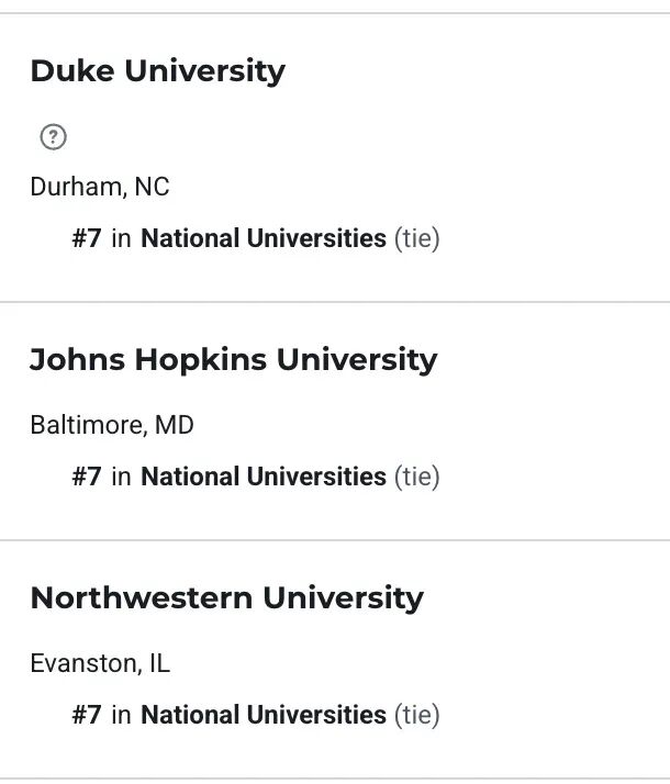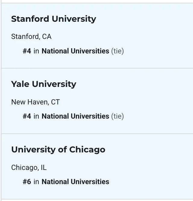 斯坦福和耶魯并列第4,芝加哥大學(xué)跌至第6,杜克、約翰斯·霍普金斯、西北和賓大并列第7,競(jìng)爭(zhēng)格局愈發(fā)激烈。