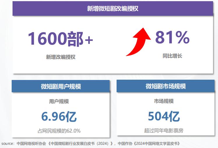 依據(jù)藝恩發(fā)布的《2025中國「網(wǎng)文IP」短劇開發(fā)價(jià)值洞察報(bào)告》,網(wǎng)文IP成為了短劇內(nèi)容的重要支撐。近兩年來,網(wǎng)文IP的微短劇改編授權(quán)量呈爆發(fā)式增長,2024年新增授權(quán)量超過1600部,同比大幅增長81%,現(xiàn)存總量達(dá)到3700余部。