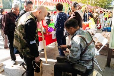 集市設(shè)有多個(gè)主題區(qū)域,滿足了市民和游客的不同需求。便民服務(wù)區(qū)里,理發(fā)、磨剪刀、小家電維修等攤位前排起了長隊(duì);健康咨詢與政策解讀攤位前,工作人員耐心解答問題,傳遞關(guān)懷;非遺體驗(yàn)區(qū),草編、剪紙、捏面人等非遺傳承人現(xiàn)場展示技藝,制作出精美的作品;互動(dòng)套圈區(qū),“守護(hù)角里”游戲趣味十足,大家積極參與,套中獎(jiǎng)品的同時(shí)還能通過小程序送上對古鎮(zhèn)的祝福;特色商品區(qū),手工藝品和文創(chuàng)產(chǎn)品讓人目不暇接,展現(xiàn)了古鎮(zhèn)獨(dú)特的文化創(chuàng)意。