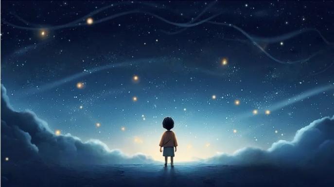 前奏部分:旋律聲部用“嗚”的發(fā)音模擬拉弦樂器,流暢旋律營造出星空般的空靈感,讓聽眾瞬間有了畫面感。